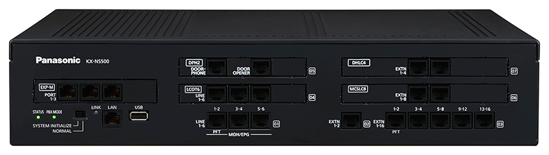 KX-NCPs (Network Communication Platform) IP PBX control units have up to 68 extensions and 60 COs. Simple to deploy, administer and maintain – the Panasonic KX-NCP500 unify communications solution, allow anytime anywhere access to a whole host of business applications via wired and wireless phones, reduce overall costs.
